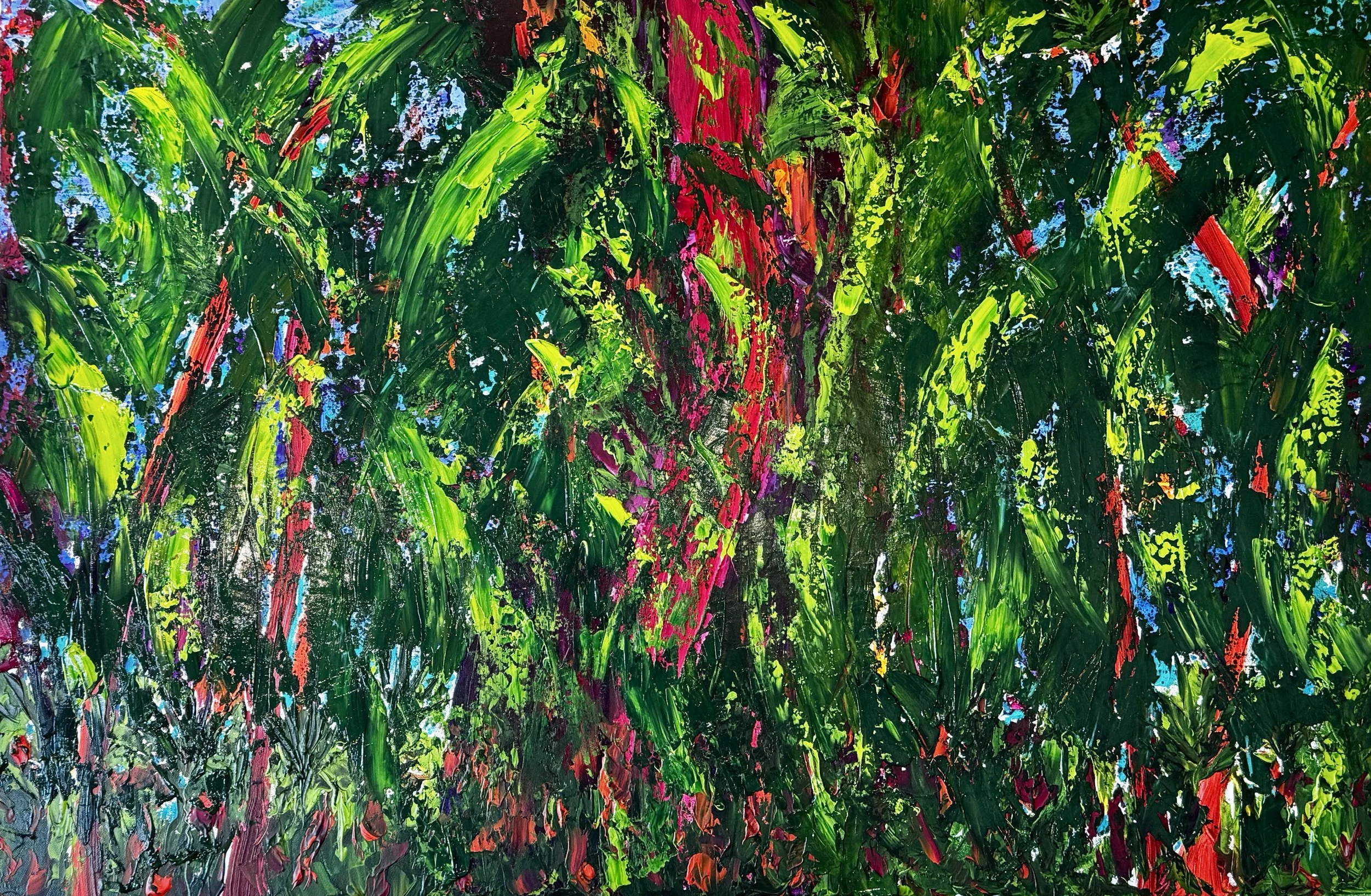 In 2001, I learned to paint with oil paints. However, over the last 6 years, I have shifted to acrylic and enjoy creating abstract pieces. Now working on a collection called Tropical Forests inspired by a recent trip to the Caribbean.